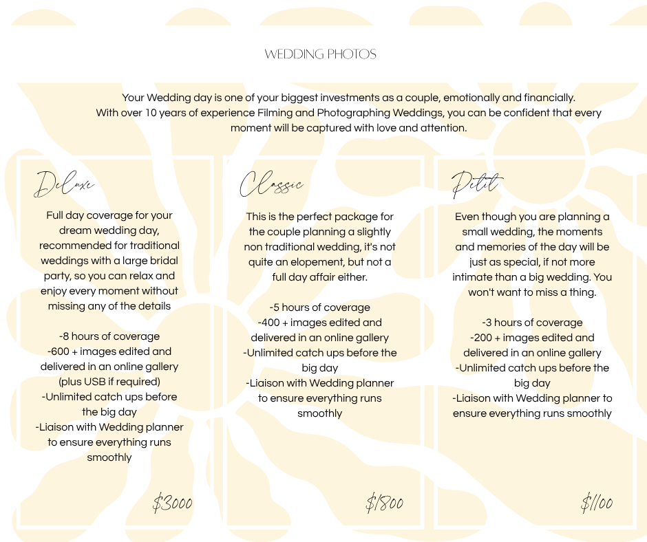 Ready to take the next step? Can’t wait to hear back from me? Find all my current packages below. Email me